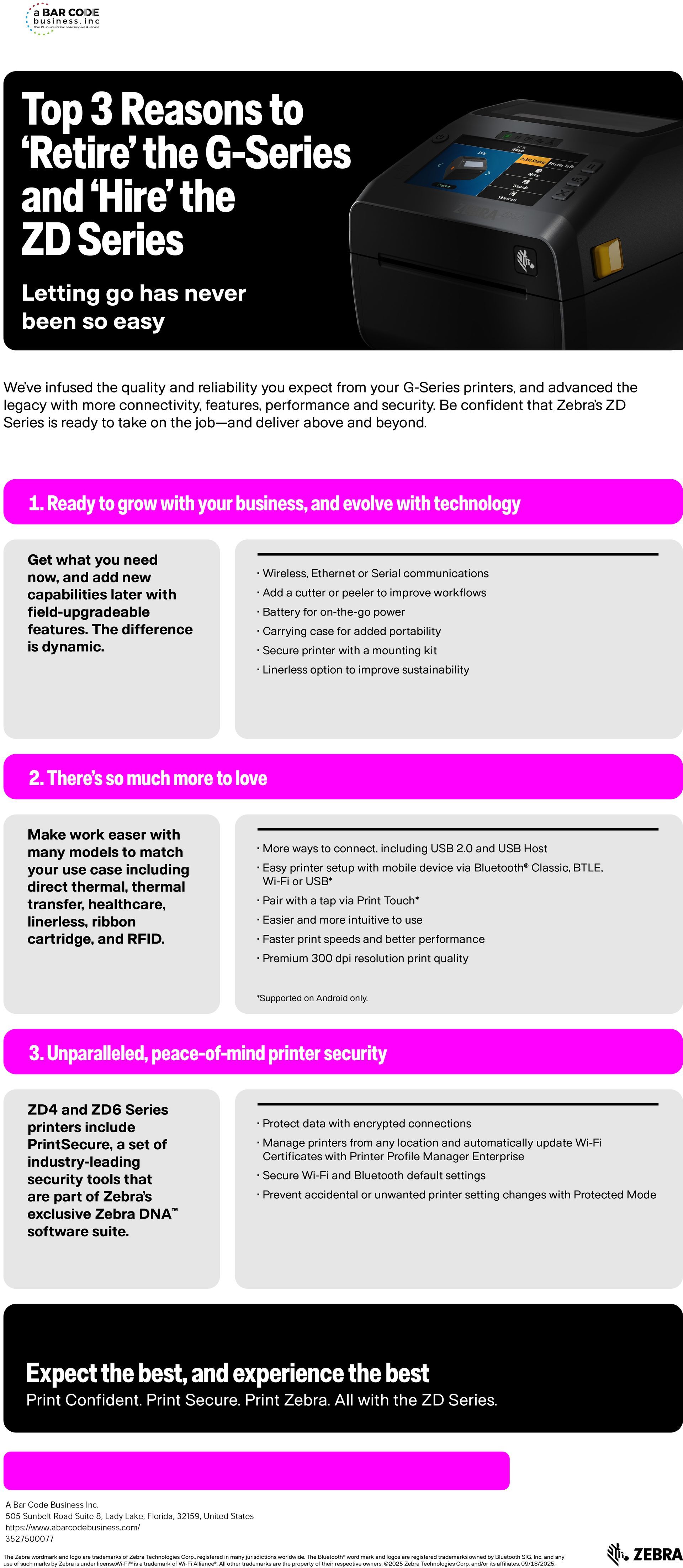If you know Zebra’s G-Series, you’ll love Zebra's ZD Series desktop printers. Building on the legacy of the proven and popular GK and GX Series, ZD421 and ZD621 printers give you so much more, delivering advanced features and capabilities for a new era of acumen and forward flexibility.